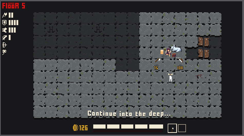 Into The Deep is a 2.5D roguelike, where you battle your way down a procedual dungeon. The game features randomly generated floors with enemy-spawners, breakable bridges and loot chests.